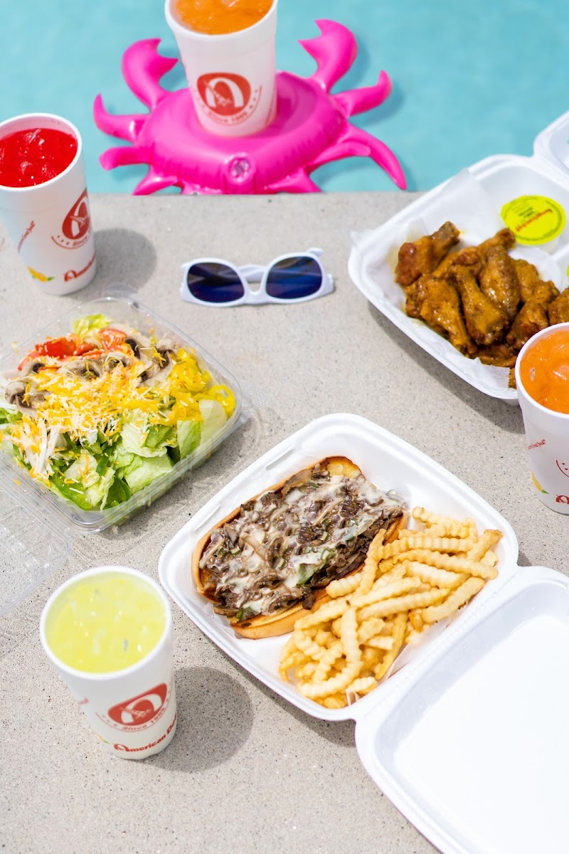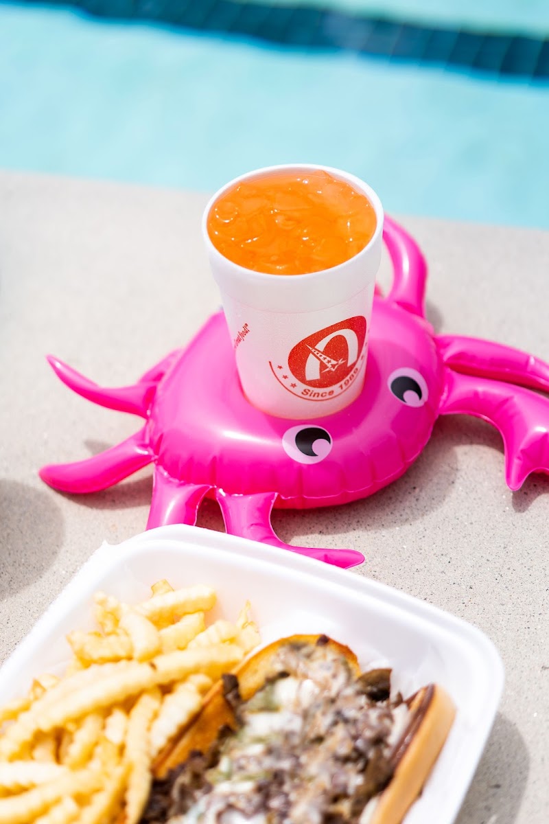 Step inside, and you’ll immediately notice the lively sports-themed décor, making it a great place to enjoy your meal while catching a game. The menu is impressively diverse, featuring everything from Fried Shrimp and Hot Wings with Fries to hearty Philly Meals and fresh American Deli Salads. If you’re visiting with a group, the Chicken Philly with Fries and Drinks or the Fried Rice and Lemon Pepper Wings Combo are popular choices that consistently impress. For those who love a mix of flavors by the pool, options like the American Deli Burger in a Floatie or Chicken and Fries with Drinks add a fun, summery twist to your dining experience.