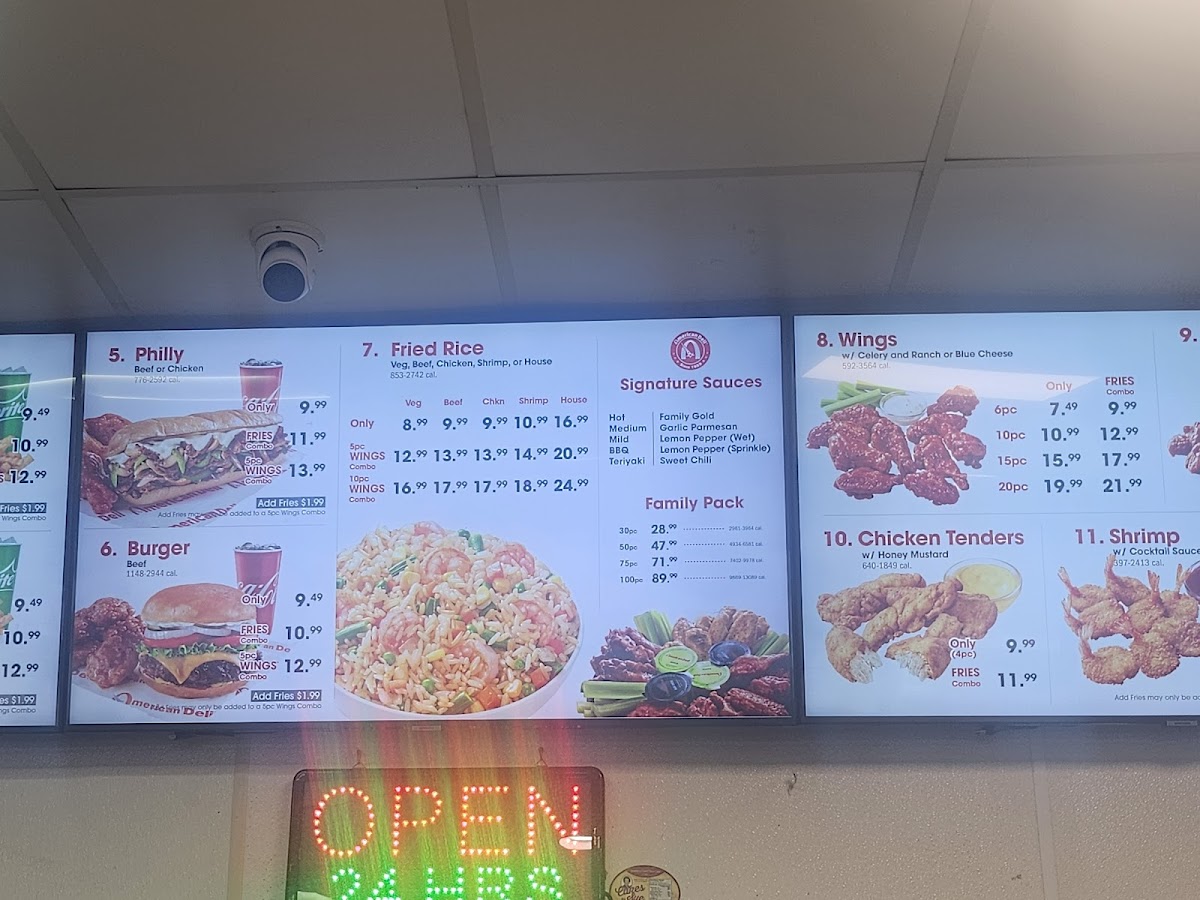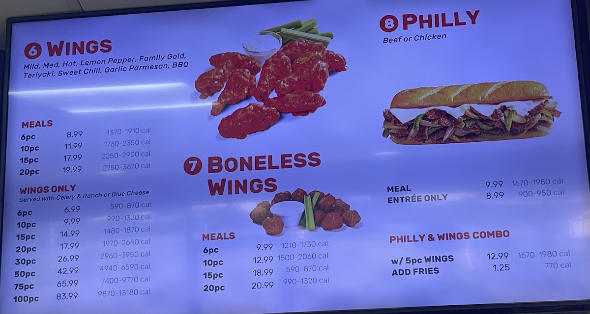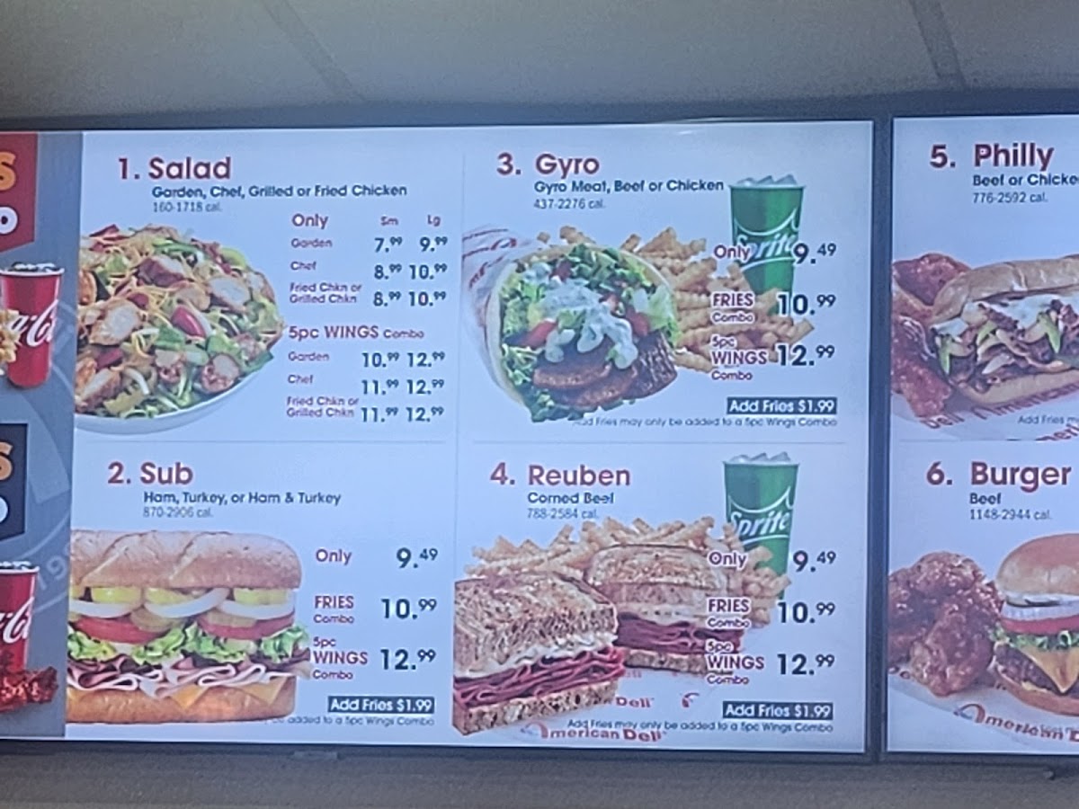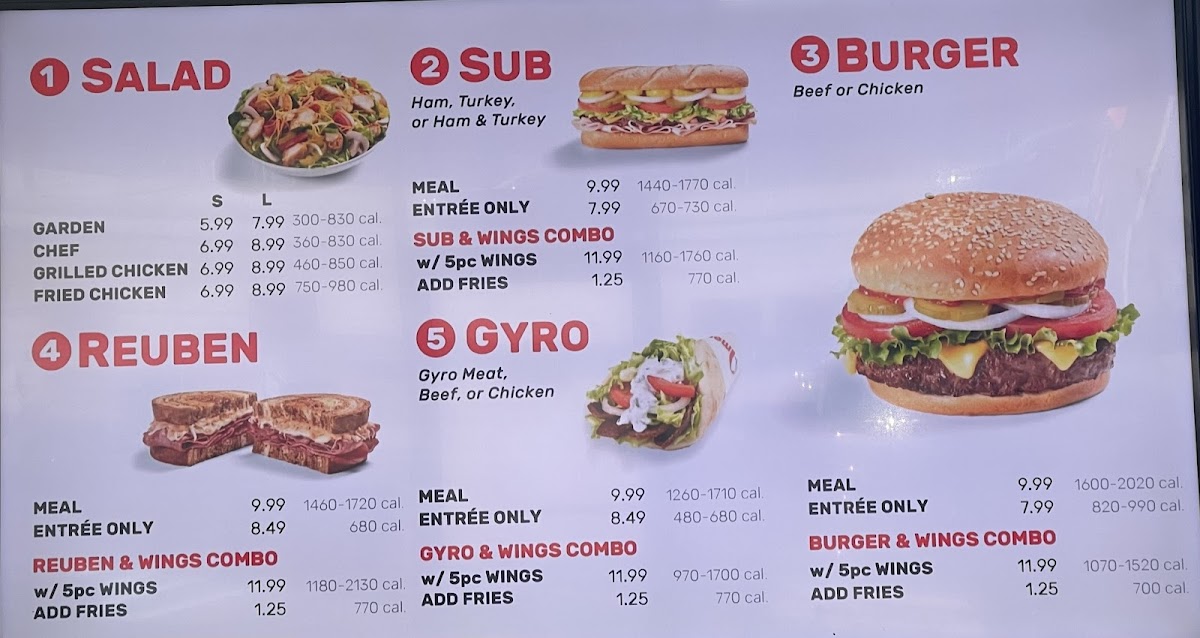 Fresh greens topped with tomatoes, sliced onions, mild banana peppers, crunchy cucumbers, green peppers, cheese, and topped with diced ham and turkey. served with 5pc wings and a drink.